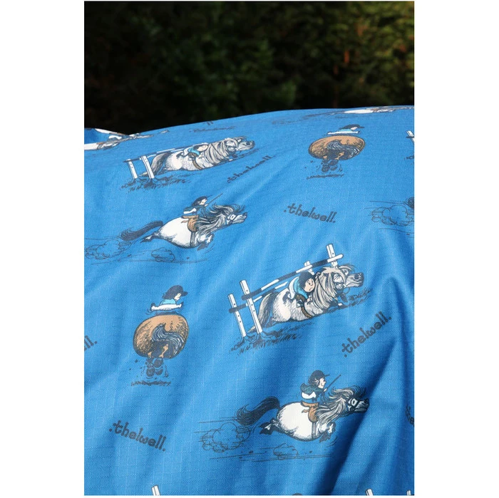 This gorgeous mediumweight StromX Original rug is the perfect addition to your horse’s wardrobe! Covered in Thelwell cartoons, blue rug has a taupe drip strip and subtle navy trim and accessories. Featuring a 600 denier waterproof and ripstop outer material, this rug has a 200g fill, perfect for when a heavier layer is required. The integrated contour neck cover means optimum protection and warmth for your horse. Finished with shoulder gusset, adjustable twin buckle chest fastenings, adjustable leg straps and surcingles and tail flap for extra protection, security and comfort